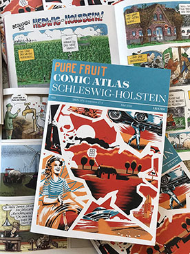 Soeben erschienen ist das kostenlose Kieler Comicmagazin "Pure Fruit". Pure Fruit wird von dem Zeichnerkollektiv Franziska Ludwig, Volker Sponholz, Tim Eckhorst und Gregor Hinz herausgegeben. Die Aktuelle ausgabe unter dem Titel "Comicatlas Schleswig-Holstein" gibt einen Überblick über die Zeichnerszene im Norden. Mit dabei sind neben den Herausgebern unter anderem Brösel (natürlich), Peter butschkow, Reini Götsche, Arne Auinger, Jens Fischer, Vanessa Drossel und auch ich bin mit 2 Seiten vertreten. Insgesamt sind über 30 Zeichnerinnen und Zeichner am Start.