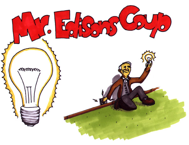 Die Augen sind zu weit oben. Der arme Mann hat gar keine Stirn, hinter der er sich Gedanken machen kann - erklärt natürlich die "wissenschaftliche" Methode, mit der er die Glühlampe erfunden hat.
